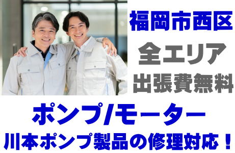 福岡市西区で川本ポンプ製品(井戸ポンプ、水中ポンプ)の故障修理は川本ポンプ取り扱い店の当店が即日対応いたします!
