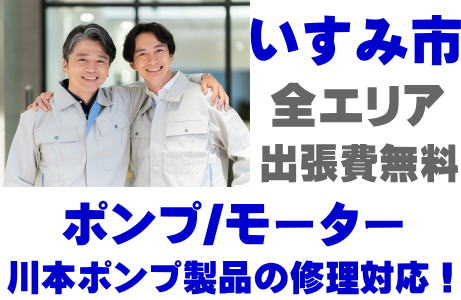 いすみ市で川本ポンプ製品(井戸ポンプ、水中ポンプ)の故障修理は川本ポンプ取り扱い店の当店が即日対応いたします!