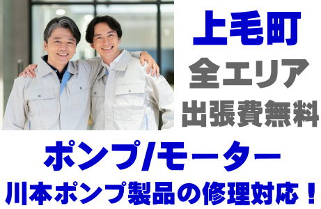 上毛町で川本ポンプ製品(井戸ポンプ、水中ポンプ)の故障修理は川本ポンプ取り扱い店の当店が即日対応いたします!