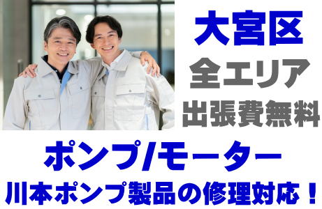 大宮区で川本ポンプ製品(井戸ポンプ、水中ポンプ)の故障修理は川本ポンプ取り扱い店の当店が即日対応いたします!